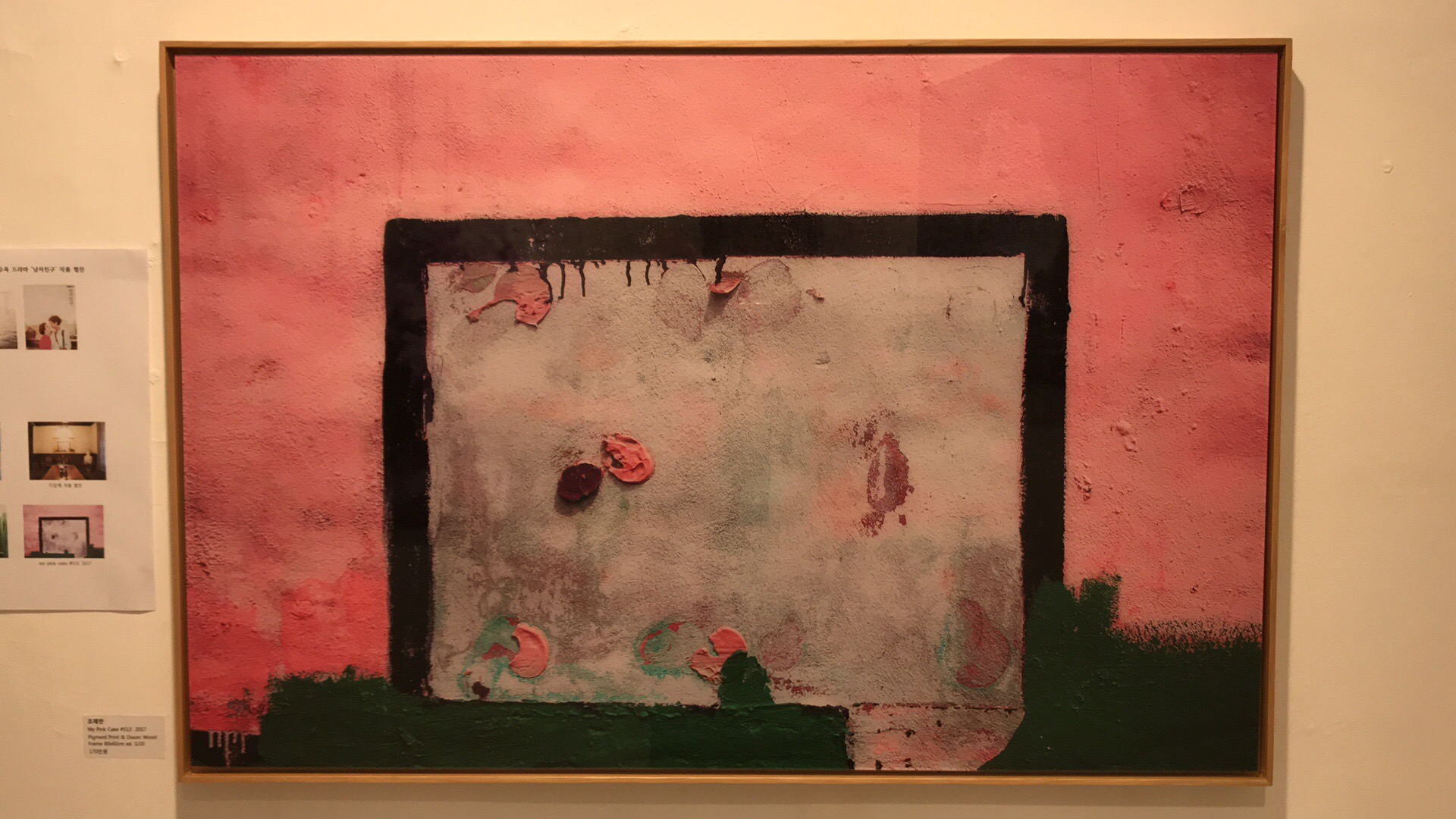 이번에 전시된 작품들 중 사진으로 볼 때는 거친 회화작품 같으나 직접 보면 이것 또한 회화작품을 사진작품으로 만들어 놓은 것으로 거친 유화를 상상하고 다시 매끄러운 사진의 질감을 느끼게 되었을 때의 이질적인 느낌의 교차가 심오하게 느껴지게 됩니다.